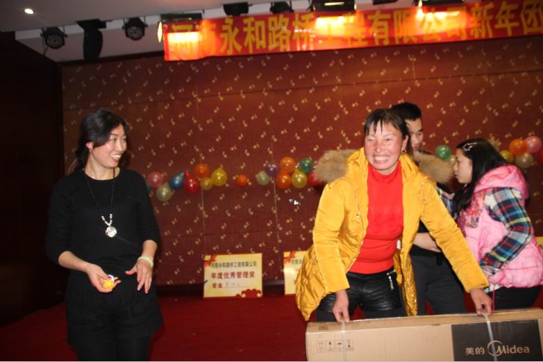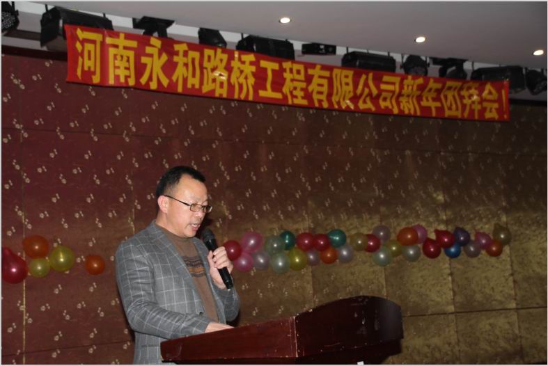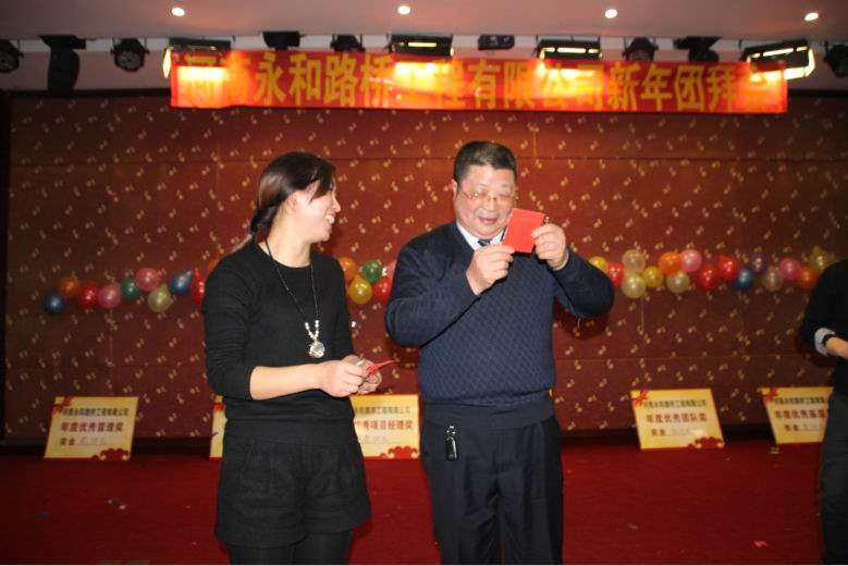 2016年2月4日晚,農(nóng)歷臘月26日晚,河南永和路橋工程有限公司在信陽市五星 級(jí)酒店中樂百花酒店隆重的舉行了2016年新春團(tuán)拜會(huì),本次團(tuán)拜會(huì)由公司全體員工及家屬、公司的合作伙伴、朋友等共同出席,大家歡聚一堂、把酒言歡、其樂融融。公司董事長(zhǎng)孔總發(fā)表新年賀詞并代表公司對(duì)年度優(yōu) 秀個(gè)人及團(tuán)隊(duì)進(jìn)行了表彰。公司還為到場(chǎng)的每位小寶寶送上新年祝福和紅包,并準(zhǔn)備了抽獎(jiǎng)環(huán)節(jié)。大家歡歌笑語,一直將熱鬧、愉快的氛圍維持到午夜。