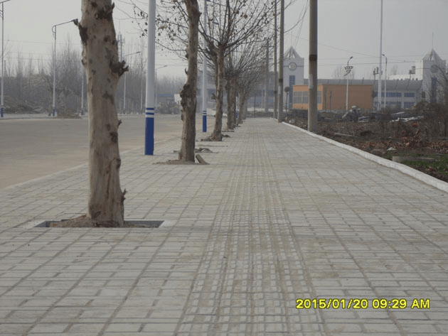 我公司組織施工的“羅山縣產(chǎn)業(yè)集聚區(qū)部分主干道人行道道路硬化一標(biāo)段”經(jīng)過(guò)90天的緊張施工,現(xiàn)已全面完工。該標(biāo)段包括羅山縣產(chǎn)業(yè)集聚區(qū)站前西道(局部)和工業(yè)大道(局部)人行道建設(shè)工程。其中站前西道人行道建設(shè)工程施工長(zhǎng)度為602.4M;工業(yè)大道人行道建設(shè)工程施工長(zhǎng)度為630.5M,兩路段工程寬度皆為5M,結(jié)構(gòu)層從下至 上依次為:8CM碎石基層、10CM砼墊層、3CM水泥砂漿結(jié)合層、6CM人行道磚。該工程正在準(zhǔn)備驗(yàn)收。